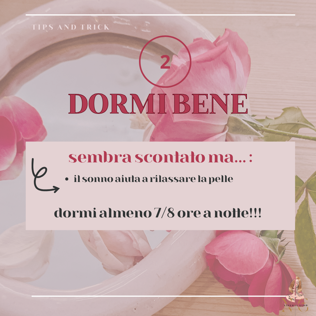 Il sonno è il momento in cui la tua pelle si rigenera. Assicurati di dormire almeno 7-8 ore a notte per ridurre occhiaie e migliorare la luminosità del tuo viso. 🌙🌟